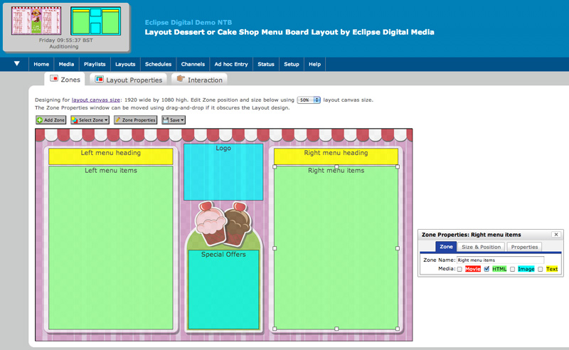 Eclipse Digital Media Digital Signage Dessert Lounge / Cake Shop ONELAN Digital Menu Board Layout Package Canvas